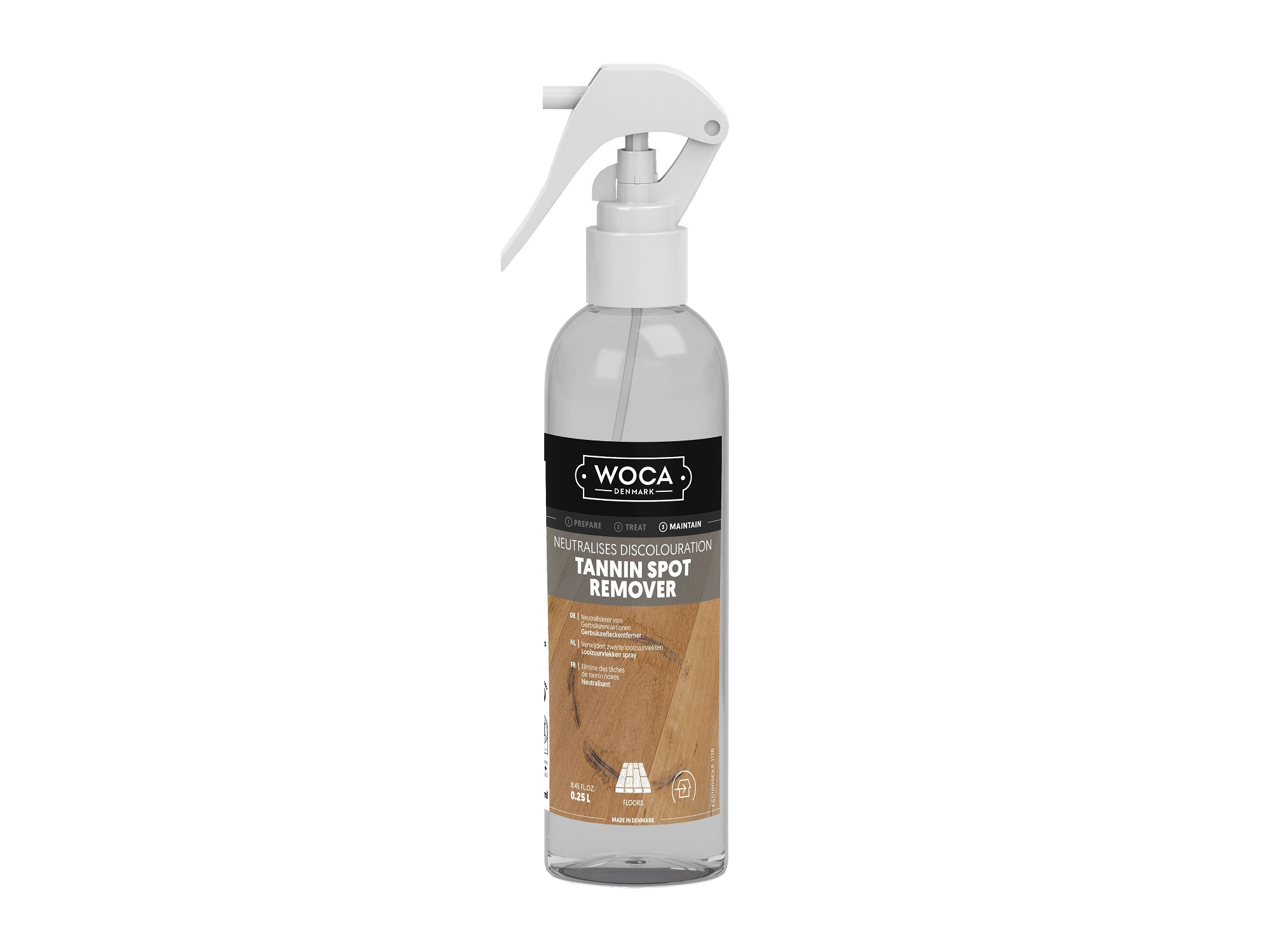 Le Neutralisant Tannin (0.25l) de chez Woca élimine les tâches noires de tannin sur les boiseries provoquées par la réaction de l'eau, il suffit de pulvériser le produit et de laisser agir.