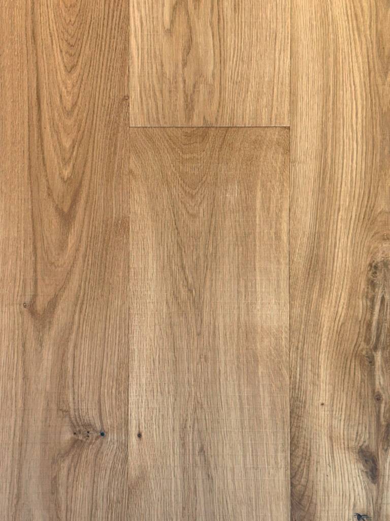 Fabriqué en chêne d’Europe de l’Ouest, ce parquet se distingue par ses nœuds ouverts et surélevés, ses fausses fissures soigneusement remplies et sa patine sciée originale, apportant un caractère unique et un relief élégant à chaque lame.